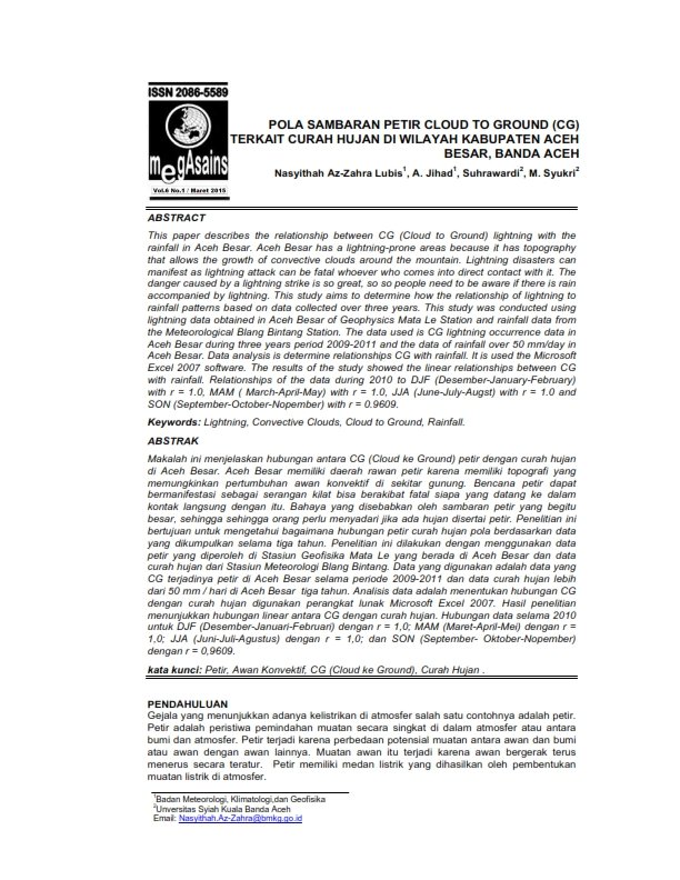 CLOUD TO GROUND (CG) LIGHTNING STROKE PATTERNS RELATED TO RAINFALL IN THE REGION OF ACEH Besar DISTRICT, BANDA ACEH