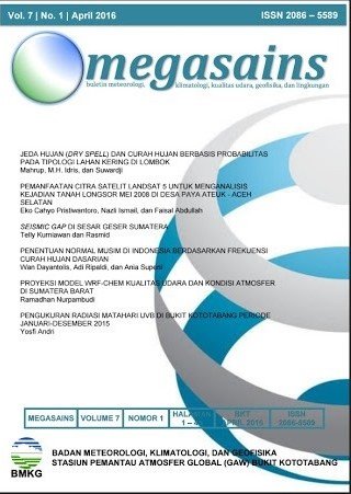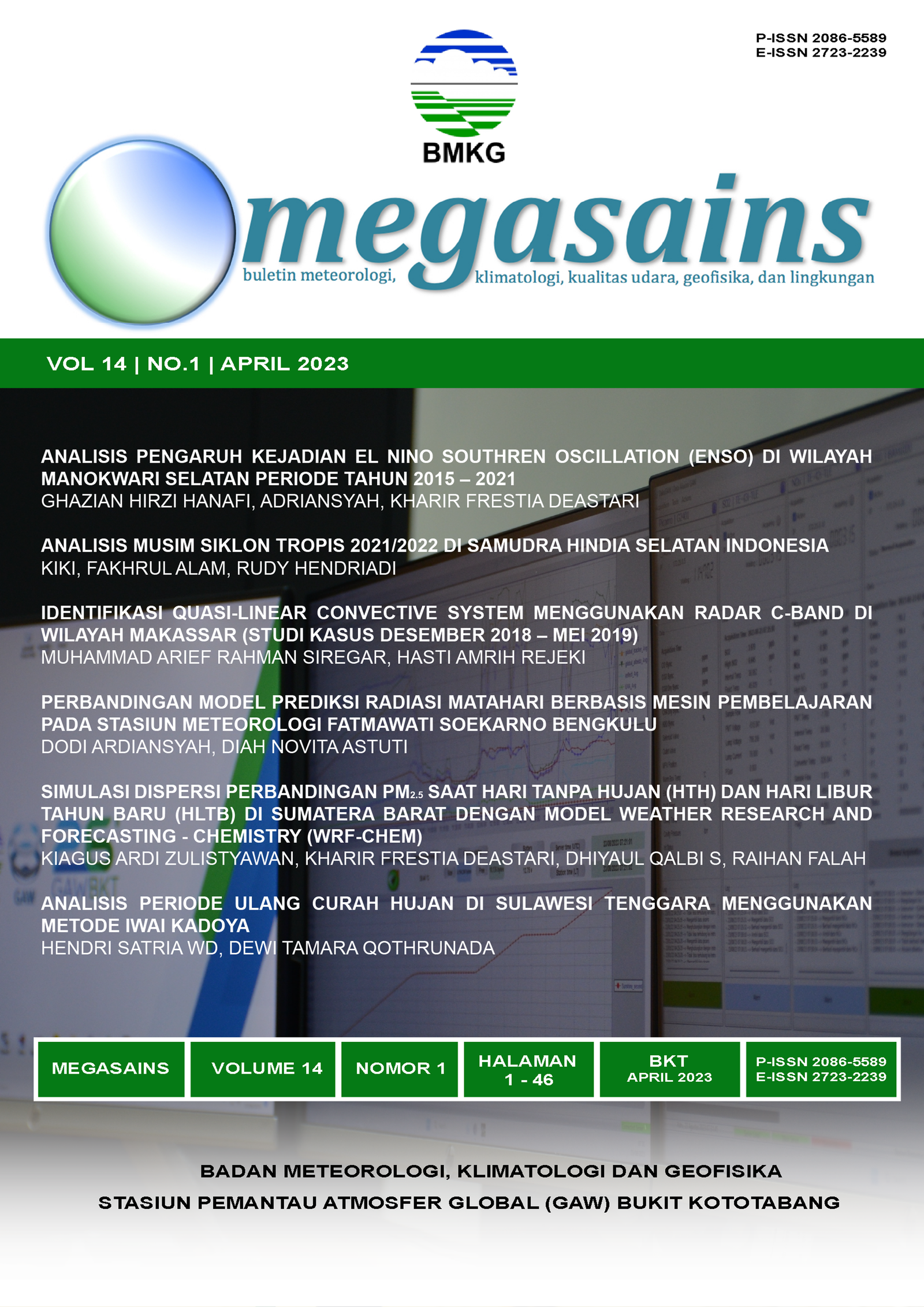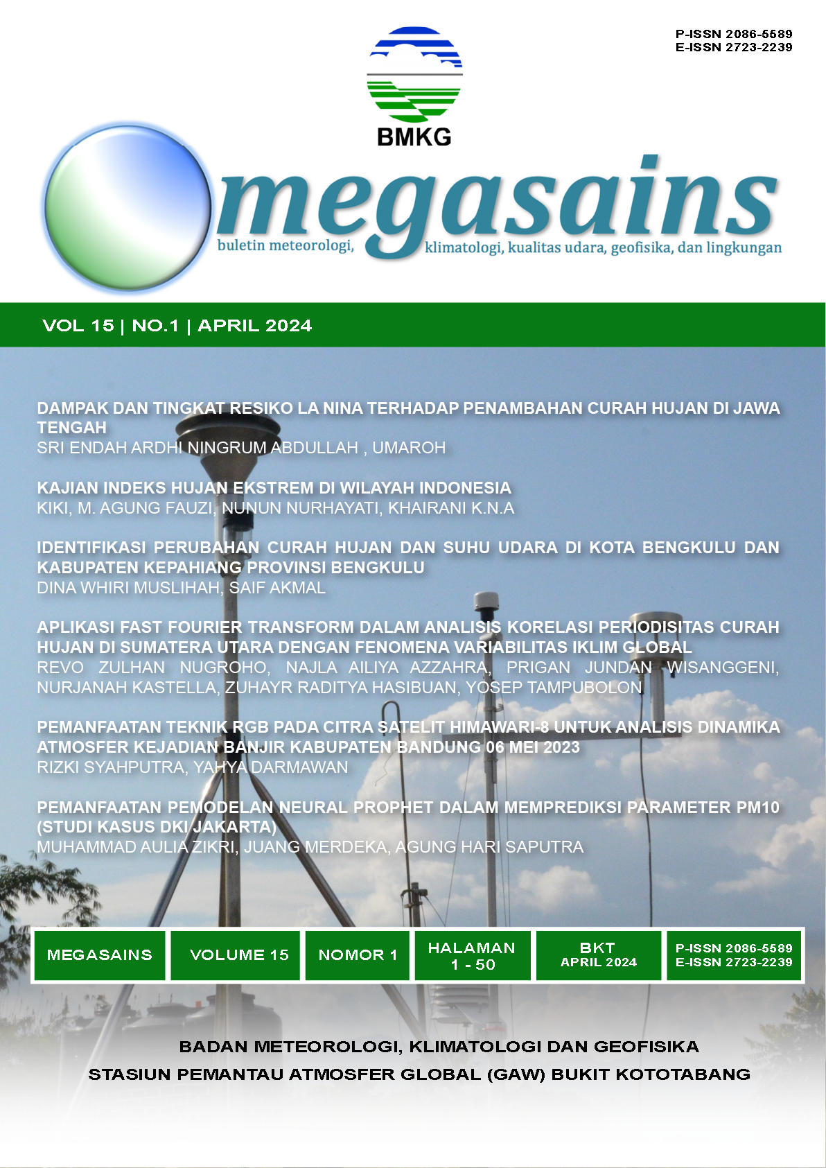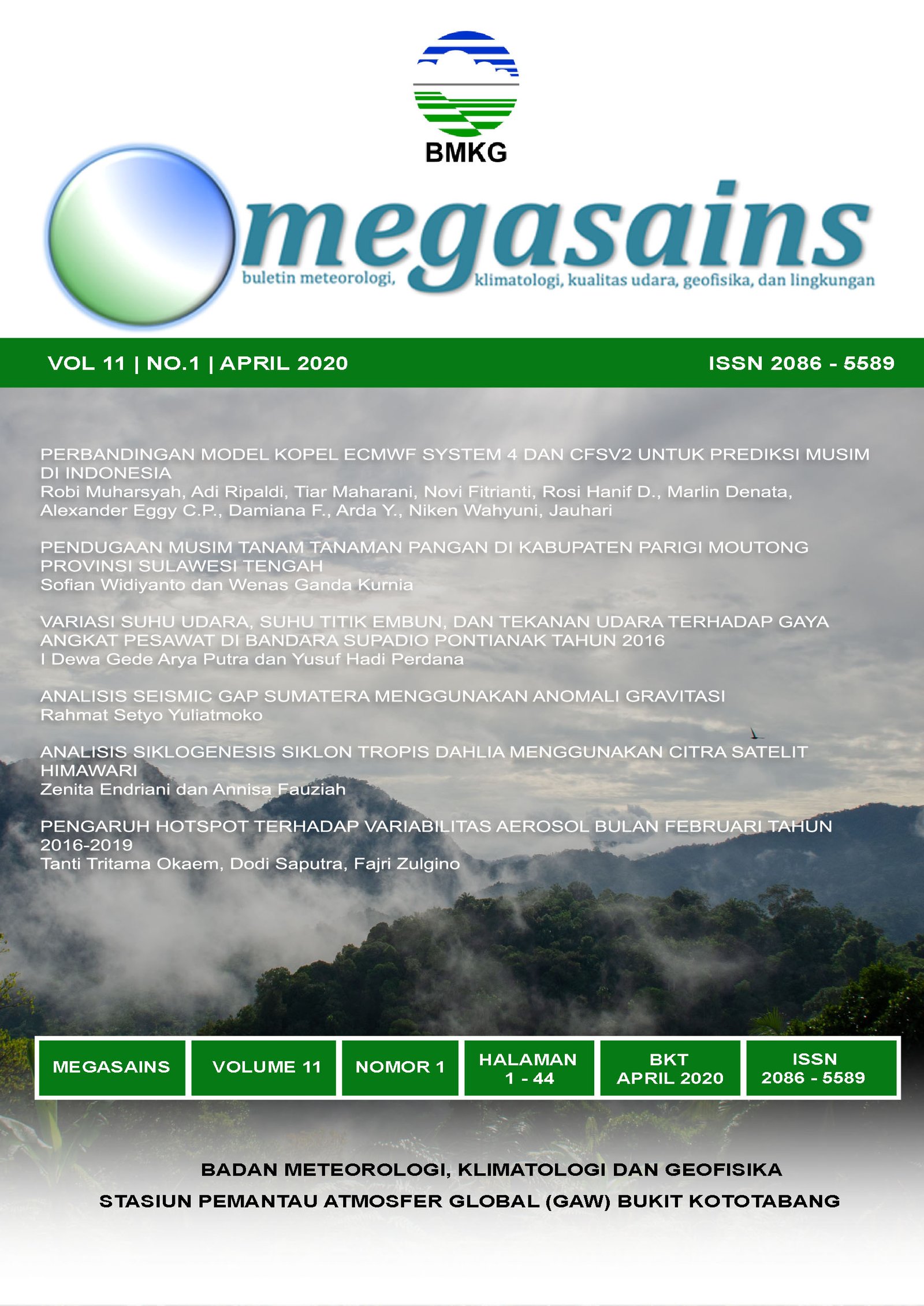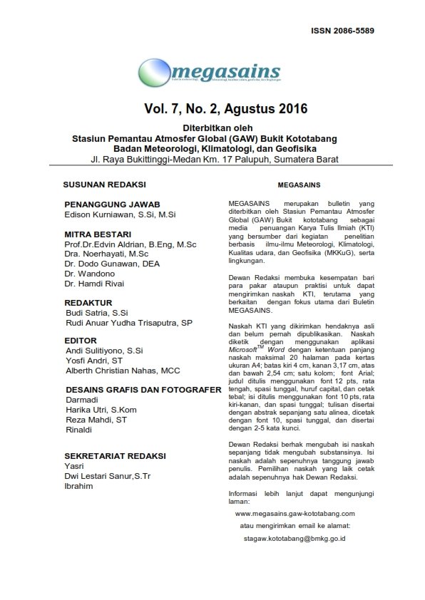 Entering its sixth year of publication, MEGASAINS continues to do so improve yourself. The improvements are not only in terms of appearance, but also in terms of content which is expected to further enrich readers' knowledge in the field Meteorology, Climatology, Air Quality, Geophysics and Environment. In ed This time, MEGASAINS has again published six representative papers the field that this bulletin is studying.